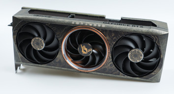 风扇方面采用了聚风扇叶,除了中间的风扇为了照顾灯光灯效为透明的黑色外,其余两个风扇均为黑色,并且风扇的中心都做了金属的三昧真火扇标蚀刻纹理处理,分别有黑火(武炎)和白火(文炎)组成,两个聚风扇叶分别都达到了100mm,中间的则为96mm。
