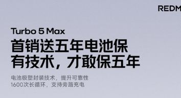 预热海报显示,REDMI Turbo 5 Max五年内系统电池健康度低于80%,官方将免费更换。
