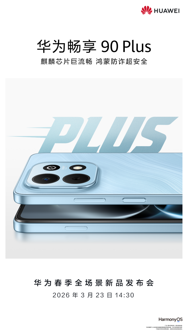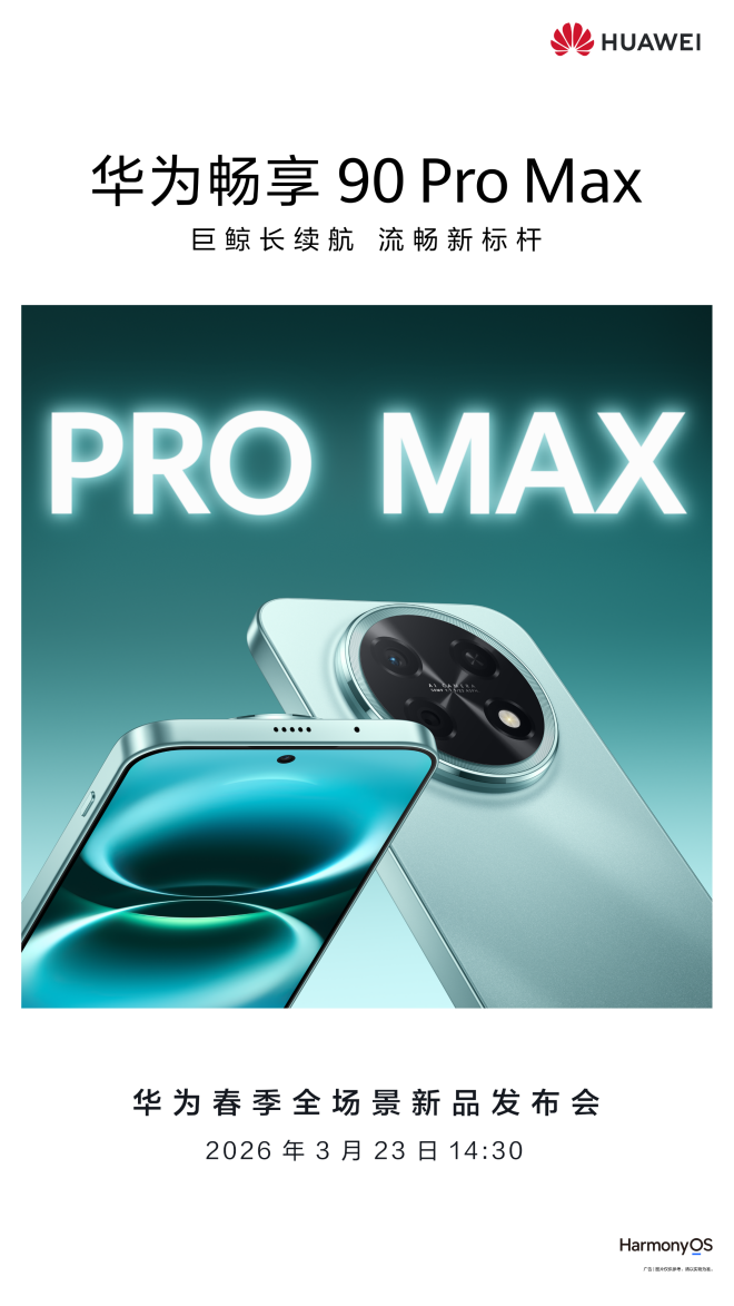 3月16日,华为终端官方微博再次发博,正式宣布华为春季全场景新品发布会将于3月23日举行,并同步释出了华为畅享 90 Pro Max与华为畅享 90 Plus两款新品的主海报。从余承东直播中透露的核心配置,到官方海报释放的关键信息,华为畅享 90系列的核心卖点逐步浮出水面。综合现有信息来看,华为畅享 90系列在外观设计、续航能力、性能表现以及系统体验等多个维度均实现了突破性升级,有望成为“史上最强畅享”。