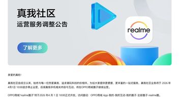 2026年4月25日14:00,真我社区App将正式关闭,并下架。