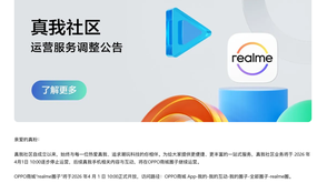 真我社区今天发布公告宣布,将于4月1日起逐步停运,后续真我手机相关内容与互动,将在OPPO商城圈子继续运营。