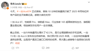 一加Ace 6T正式首销,起售价2399元。新机发售后,一加中国区总裁李杰宣布,一加Ace 6T首销10分钟的销量就打破了2025年同档位所有产品的全天销售纪录。