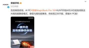 4月24日起,荣耀首款AI PC——荣耀MagicBook Pro 16HUNTER版迎来重磅功能升级:其全新“静音性能”模式开始陆续进行推送,在兼顾性能、续航、便携的基础上,又在高性能与低噪音之间找到了全新平衡点,传统PC性能与安静无法兼得的痛点就此打破,笔记本高性能静音时代正式开启,为用户带来独一无二的优雅使用体验。