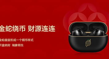 耳机盒上的金蛇盘旋成一个铜币的样式,配合上耳机开盒的动作,寓意着开盒纳财。此外华为FreeBuds Pro 4蛇年典藏版还采用了鎏金篆刻工艺,触感上十分细腻。