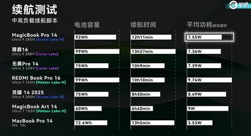 评测媒体总结认为,荣耀MagicBook Pro 14最惊艳的地方是超长续航,用Arrow Lake处理器做到了堪比MacBook的续航,同时它的性能释放以及日常场景的噪音控制也相当不错。