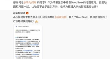 近日,华为终端BG首席执行官何刚与百度地图在微博互动,点赞鸿蒙版百度地图在DeepSeek加持下的的智慧出行体验,百度地图也积极回应,表示未来继续与鸿蒙深度合作,成为更懂大家的智能出行伙伴。