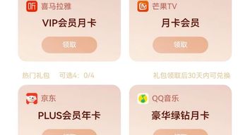 热门礼包:京东PLUS会员年卡、QQ音乐豪华绿钻月卡、优酷VIP会员月卡、酷狗音乐豪华VIP月卡。