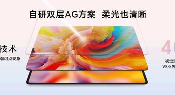 荣耀平板10 柔光版搭载的荣耀首款类纸柔光屏,获得德国莱茵TÜV类纸显示认证,树立柔光护眼技术的全新标杆。类纸柔光屏采用自研双层AG方案,通过闪点消除技术,提升40%的视觉清晰度;荣耀类纸柔光屏可消除98%环境干扰光,书写阻尼感提升50%,触摸质感提升15%,可真正实现观感如纸、笔感如纸和触感如纸。