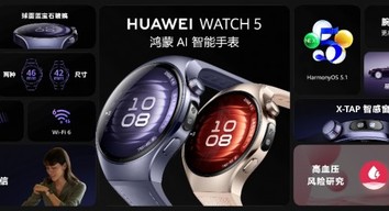 HUAWEI WATCH 5是首款接入鸿蒙智能的鸿蒙AI智能手表,为消费者带来智慧助手小艺、手势、全场景互联等更多智慧体验,以及更流畅、精致的操作体验。手表还搭载全新硬件多感知X-TAP智感窗,实现健康功能的重磅升级,并带来新颖有趣的压感交互方式。