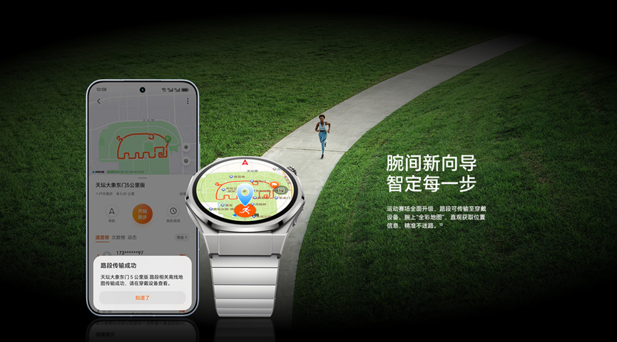 荣耀手表5 Ultra还将运动赛场玩法与全彩地图完美融合带来全新升级。用户在荣耀运动健康APP创建专属运动路段和竞技路线后,用户的好友也可选择该赛段进行运动挑战,完成后可产生实时成绩对比,打破运动的时空界限让赛道不再孤单,将原本可能枯燥的个人坚持转变为充满乐趣的社交竞技。