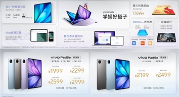 vivo正式推出新平板vivo Pad5e,起售价1999元。售价方面,vivo Pad5e 8GB+128GB售价1999元,8GB+256GB售价2299元,12GB+256GB售价2599元,16GB+512GB售价2999元。vivo Pad5e柔光版8GB+128GB售价2199元,8GB+256GB售价2499元。