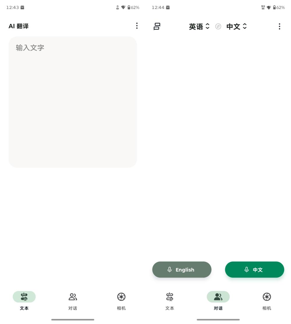 AI翻译支持7大语言实时互译,轻松打破语言壁垒,支持文本输入,实时对话,相机拍照翻译等等。还是非常实用的。