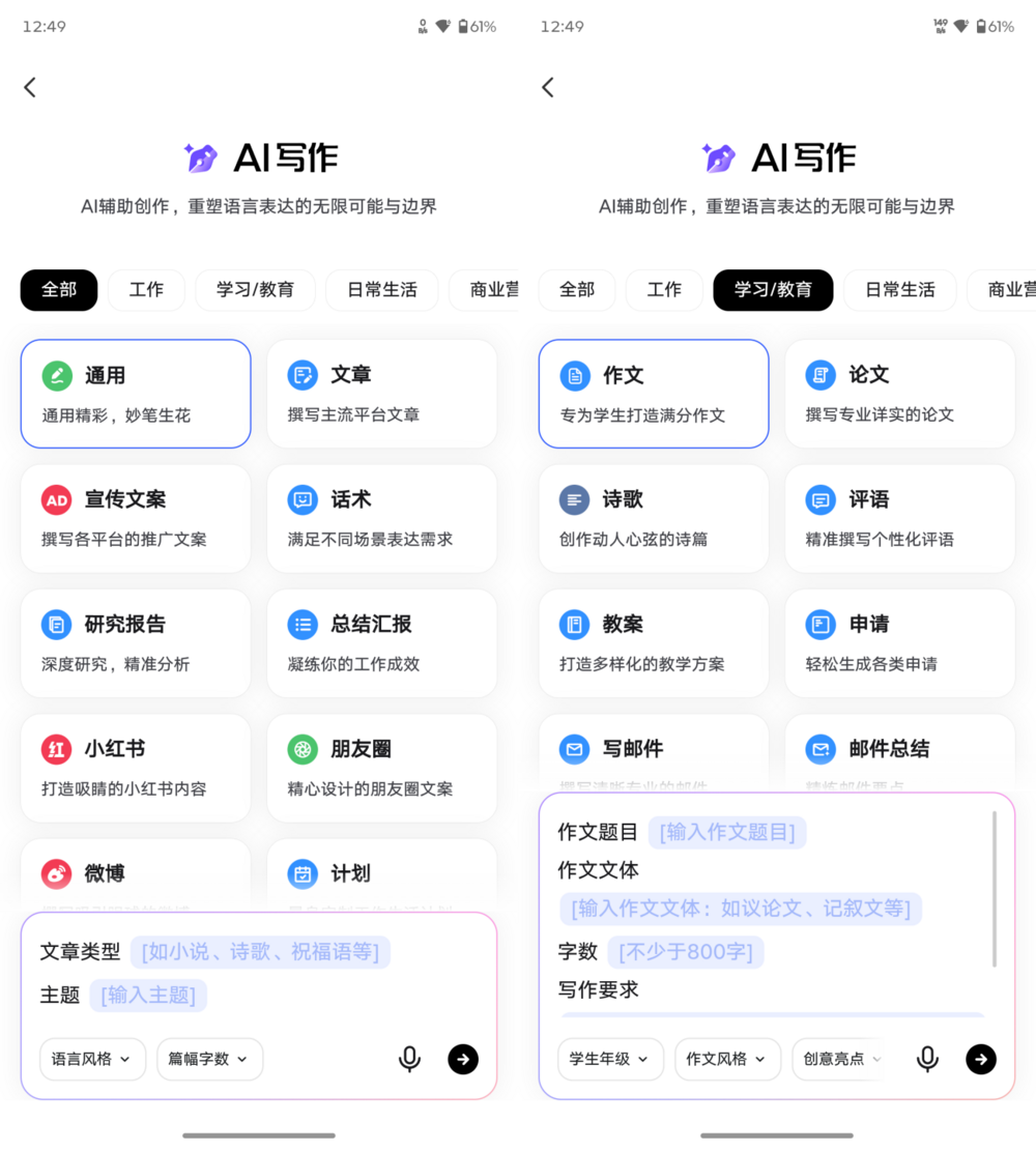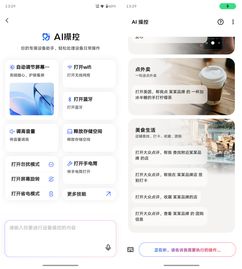 AI写作能智能辅助创作,为灵感续航AI操控可实现系统设置、应用控制等全场景技能调用,让智慧生活触手可及。