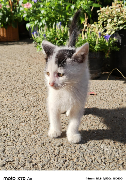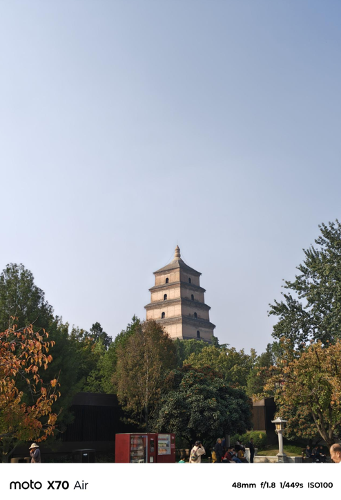 从样张来看,相比此前的机型,本次影像还是有进步的,moto X70 Air在画质细节、色彩还原、场景适配三个维度都展现出越级表现,并未有在影像上妥协太多。其中办公粉色花卉样张中,花瓣的渐变粉色层次过渡自然,从浅粉到深粉的色彩差异被精准捕捉,色彩之间形成鲜活对比,这源于主摄5000万像素的解析力与潘通色彩认证的调校功底,大雁塔远景样张中,塔身的砖石纹理、周围树木的枝叶细节依然清晰,解析力以及算法依然在线。流浪小猫的动态样张中,即便主体处于移动状态,毛发的蓬松感与地面的颗粒细节也完全保留展现了精准的对焦。