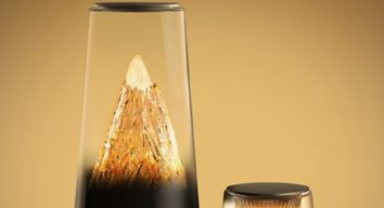 X3 Pro日照金山路由主体采用柱形渐变透明外壳,里面是一个会发光的山峰饰品,纯黑底座印有金色的HUAWEI Logo。