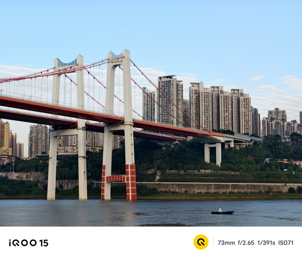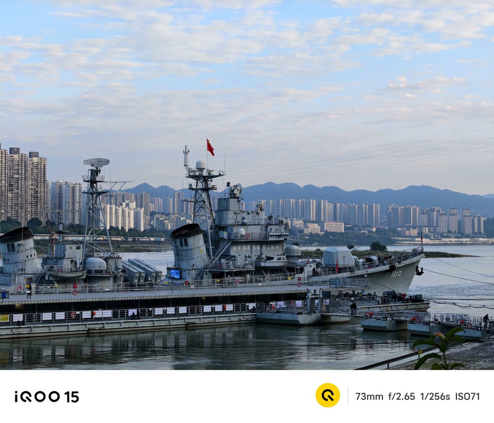 iQOO 15拍摄远处货船、建筑、飞机时,即使在243mm高倍变焦下,细节依然清晰可辨,如军舰上的中国人民解放军海军赠字样、建筑的纹理都能精准还原;搭配OIS光学防抖,高倍变焦时画面稳定性出色,没有明显的模糊或噪点爆炸,这在演唱会、远景风光等场景中实用性极强。主摄和中焦段拍摄的建筑、桥梁样张,色彩鲜艳且层次分明,画面锐利度高,建筑线条和细节刻画清晰;