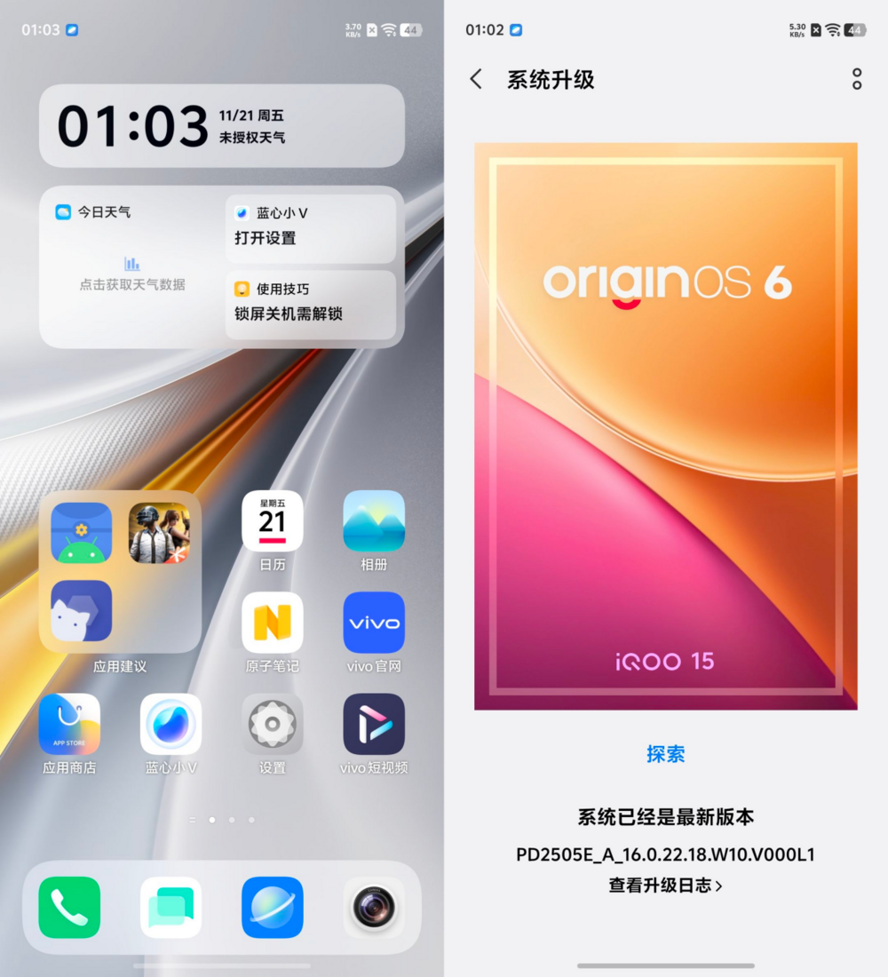 iQOO 15搭载基于Android 16开发的OriginOS 6,系统在流畅性、智能化与个性化方面均有显著提升。流畅性上,不公平调度2.0增加对网络、内存、IO资源的调度策略,配合虚拟显卡技术,实现线程级不公平资源调度,系统运行稳定流畅,长时间使用也无卡顿。