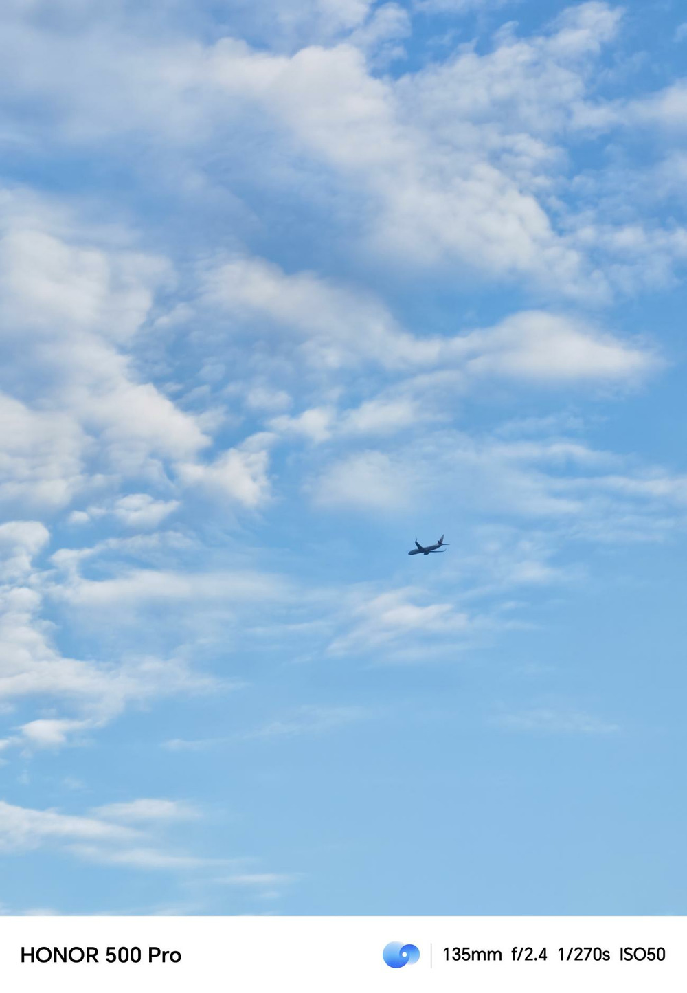 荣耀500 Pro在人像、长焦、风光、建筑等场景中均展现出越级实力,拍摄城市建筑、桥梁、江边建筑群时,能完整收纳建筑全貌与天空层次,配合畸变矫正算法,画面边缘没有明显变形,适合拍摄风光大片或多人合影。人像样片分别在室内柔和光与室外复杂光环境下拍摄,人物肤色呈现出一定质感,妆容自然。拍摄高空飞机,长焦下飞机的机身线条清晰结合OIS防抖,画面也能保持稳定。加上可自定义侧边按键,无论是摄影小白还是进阶用户,都能在不同场景下拍出超出预期的作品。