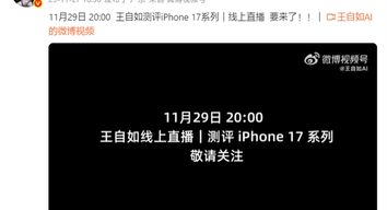 ZEALER创始人王自如今天发文宣布,“王自如测评iPhone 17系列|线上直播”将于11月29日20:00开启。很多关注手机数码的朋友非常激动,纷纷评论“爷青回”。