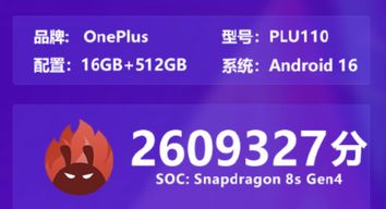 据推测,该机是即将发布的一加Turbo系列新机。该机为16GB+512GB版本,安兔兔V11版跑分达到2609327,刷新中端机跑分纪录。