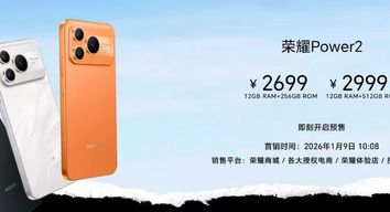 目前,荣耀Power2已全面开启预售,并将于2026年1月9日10:08在荣耀商城、各大授权电商、荣耀体验店、授权零售门店正式开售。