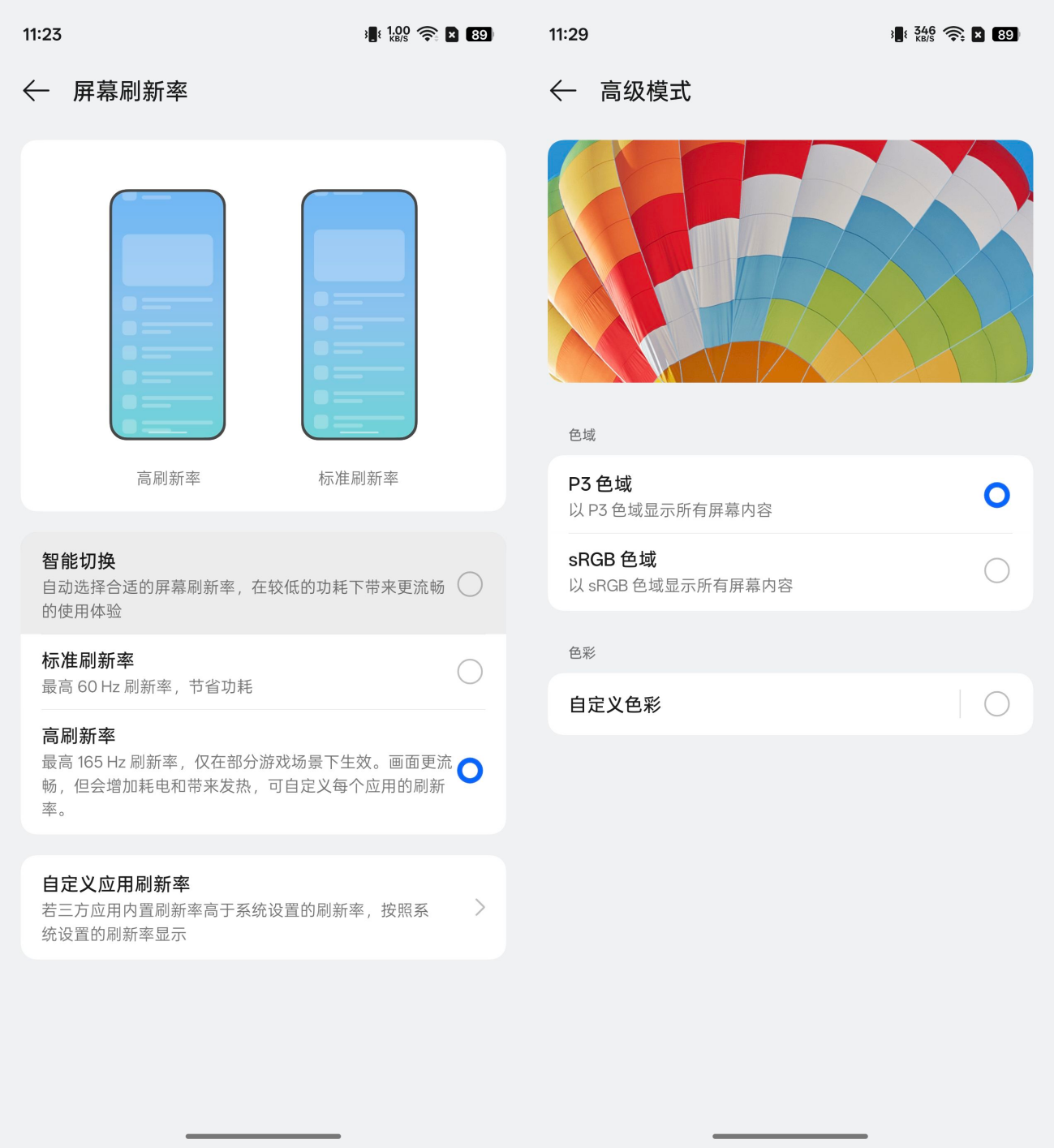 通透度方面,真我Neo8的表现堪称惊艳。依托三星M14基材的优势,其手动最高亮度可达1000nit,全局峰值1800nit,局部峰值更是达到行业顶级的6500nit,而在阳光直射场景下,20%窗口的阳光显示亮度能飙升至3800nit。实际体验中,即便在正午强光下查看白底文档或游戏画面,也能清晰可见,无需刻意遮挡。更难得的是,通过自研高亮色貌算法,这块屏幕在3800nit的超高亮度下依然能维持103% P3色域,避免了传统屏幕高亮场景下的色彩压缩和泛白问题,画面色彩纯净饱满,通透感远超同档产品,甚至可与高端旗舰一较高下。