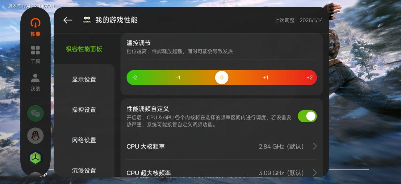 性能:第五代骁龙8+极客性能面板