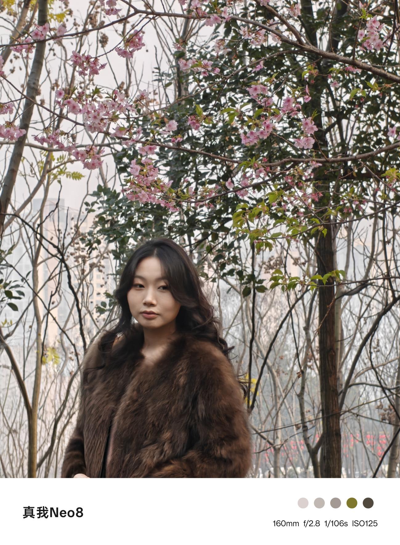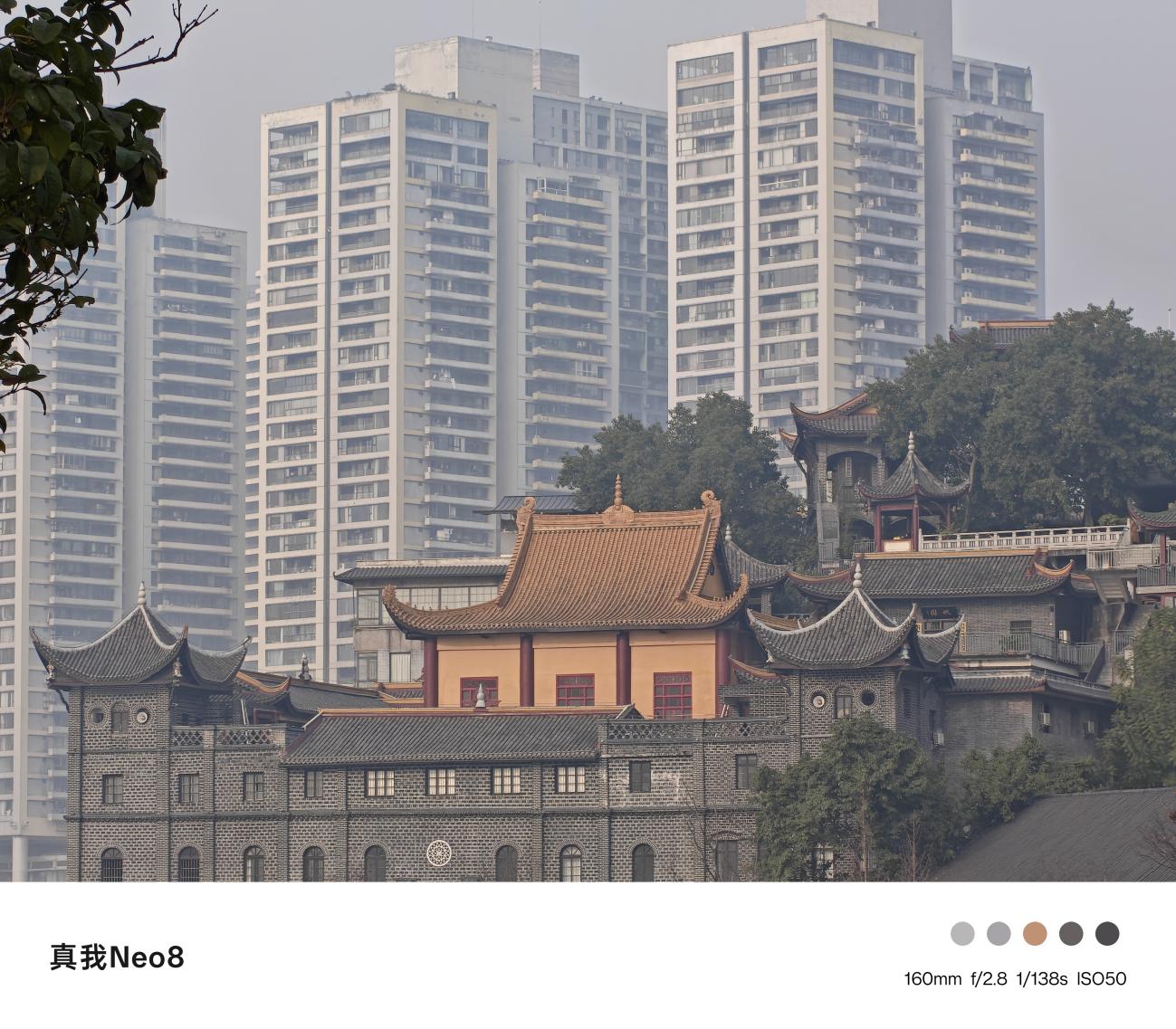 真我Neo8影像实力是同档降维打击,尤其是同价位独有的潜望长焦,让它在拍得远、拍得清、拍得有质感这三点上,超同档机型的平均水平,比如长焦端,猫咪样张用潜望长焦拍近距离动物,猫咪的斑纹纹理、胡须根根分明,毛发的蓬松质感也被完整保留,高ISO场景是很多中端机的软肋,但真我Neo8的控噪表现很惊喜,鹦鹉头部的灰绿渐变、颈部鳞片状羽毛的层次清晰,没有大面积彩噪或涂抹感,暗部细节也没丢失。樱花人像样张把长焦人像的优势拉满,背景的樱花枝条被虚化得柔和朦胧,既突出了人物主体,又保留了环境的氛围感。此外长焦带来的拍摄感解析力远超同档,无论是高楼远景、长江游轮、缆车,还是古建筑即便在雾蒙蒙的环境下,潜望长焦的解析力依然在线是同档机型数码变焦达不到的水平。