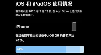数据显示,截至2月12日,在过去四年内发布的iPhone机型中,iOS 26的安装率达到74%,仍有20%的用户停留在iOS 18版本,在所有机型里,iOS 26整体升级率为66%。
