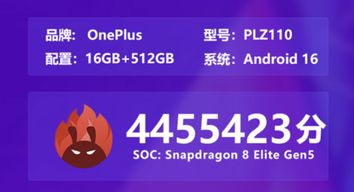 该机搭载了第五代骁龙8至尊版,配备16GB内存+1TB存储,安兔兔V11总分达到了4455423。