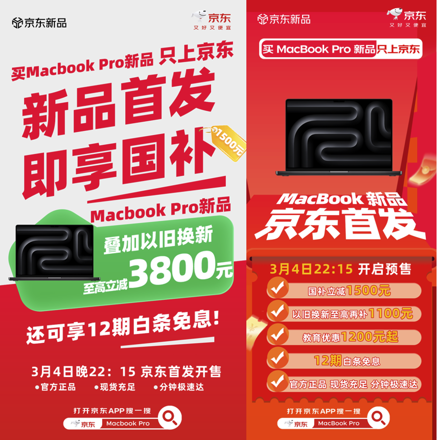 同期发布的2026新款MacBook Pro则精准对标专业用户需求,性能表现极为强悍。它搭载M5 Pro与M5 Max芯片,并配备了绚丽的Liquid视网膜XDR显示屏,无论是专业级创作设计,还是高清影音娱乐,都能带来极致体验。在京东购买新款MacBook Pro,可享国补15%立减1500元,教育优惠1200元起,以旧换新补贴至高1100元,多重福利叠加至高立减3800元,同样支持12期免息,让专业用户轻松入手高端设备。