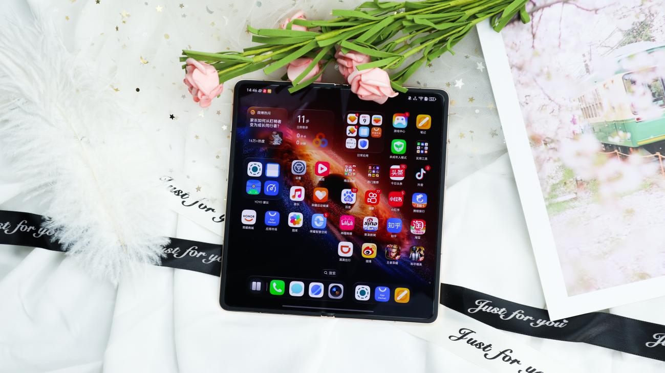 双屏的显示素质同样为商务办公量身打造,外屏6.52英寸,峰值亮度达6000nits,全局亮度2000nits;内屏7.95英寸,峰值亮度5000nits,全局亮度1300nits,无论是在阳光充足的机场候机厅,还是光线较暗的会议室,都能呈现清晰通透的画面,看高清商务方案、视频会议画面都毫无压力。1.5%的专业级超低反射率,让双屏实现室外抗干扰、室内防反光、熄屏超深邃的效果,户外办公时无需遮挡屏幕,也能清晰看清内容;双屏均支持4320Hz超高频PWM调光与十大护眼技术,获得TÜV莱茵全局护眼认证,商务人士长时间处理文档、开视频会议,也能有效降低视觉疲劳,呵护眼部健康。功能层面,行业首发的ADR显示技术可将普通高清视频动态拓展至接近HDR效果,搭配全新HDR动态壁纸,视觉体验更具沉浸感;自研3D点胶技术实现1.18mm的外屏最窄黑边,折叠屏行业第一,进一步提升屏占比与视觉完整性。可以说满足观影、办公、游戏的全兼容。