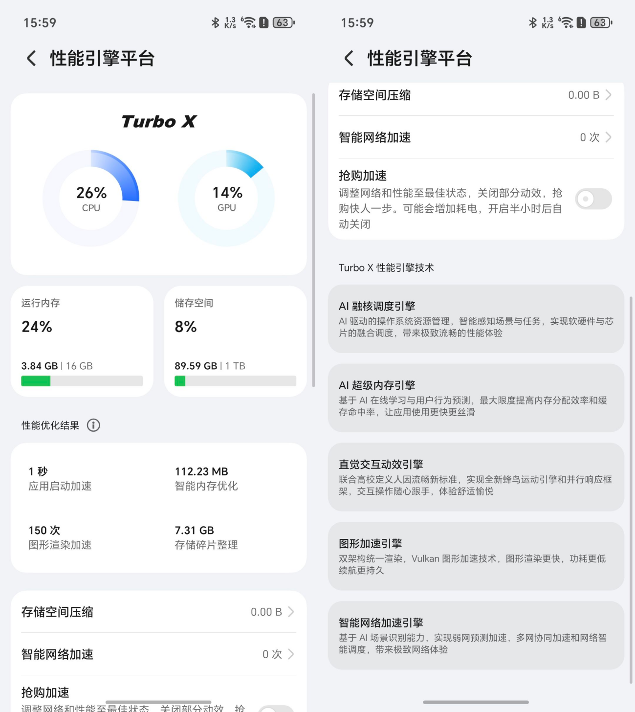 其自研的能效增强芯片HONOR E2也是配合SOC在一些功耗场景下能让电池更加持久,从而摆脱电量焦虑,同时配合Turbo X性能引擎,在交互和AI以及图形渲染上使得功耗更加出色。