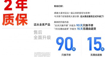 自2025年8月起,迈从全面升级售后政策,将“30天只换不修”延长至90天,“7天无理由退货”延长至15天,覆盖键盘、鼠标、耳机等全系产品。2026年1月1日起,全系产品更是支持2年质保,并为历史订单赠送1年延保。这样的政策力度,不仅延长了用户的体验周期,也为客户提供了更长久的安心保障,在同类品牌中实属少见。